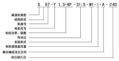 S系列斜齒輪、蝸輪減速機型號標記: